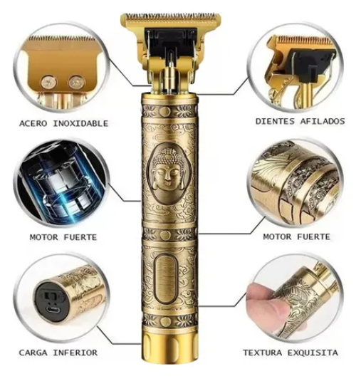 Equipada con cuchillas de acero inoxidable templado, resistentes a la corrosión y al desgaste, que permiten un corte uniforme, limpio y seguro en diferentes tipos de cabello y barba.