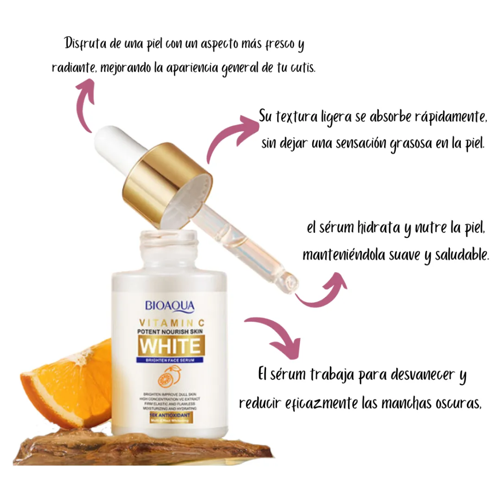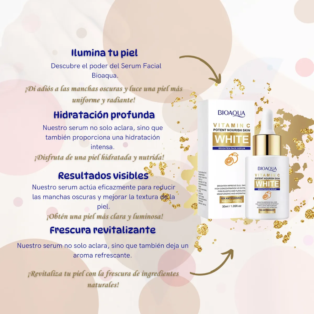 El Serum Facial Blanqueador Aclarador Hidratante 30ml de Bioaqua es la solución perfecta para una piel más luminosa y uniforme. Formulado con vitamina C y otros antioxidantes, este sérum hidrata profundamente y reduce las manchas, dejando tu piel radiante y rejuvenecida.